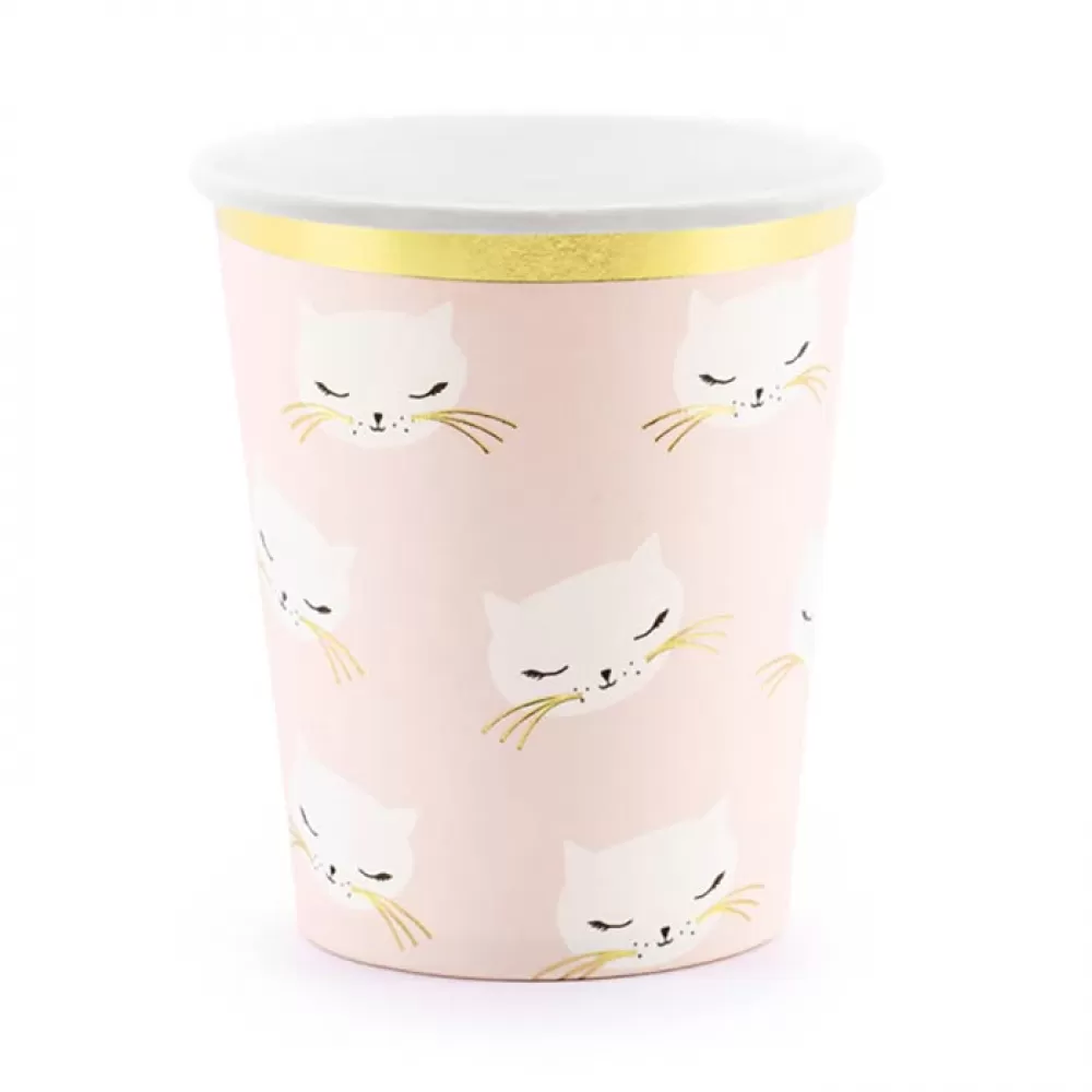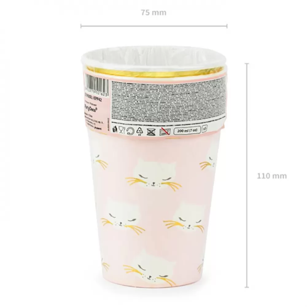 - Одноразовые бумажные стаканы Котики с мордочками кошечек на розовом фоне украсят праздничный стол и поднимут настроение.