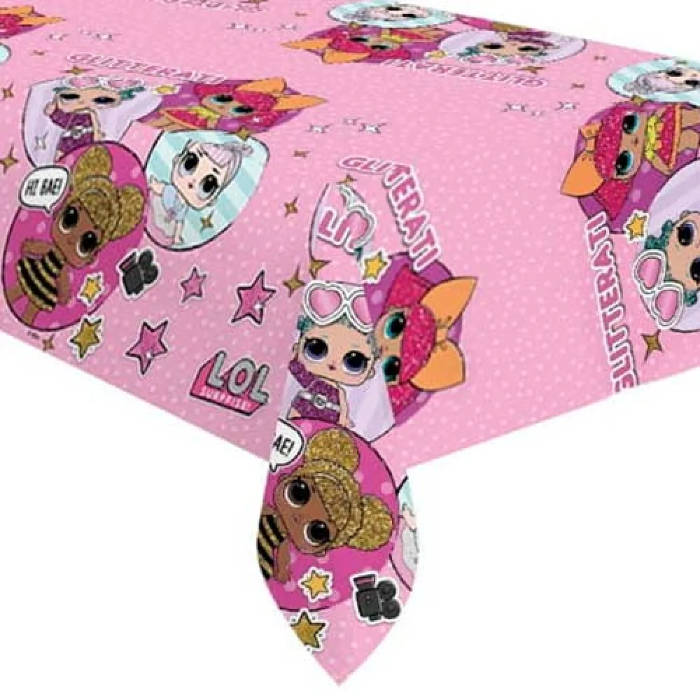 - Розовая скатерть с милыми куклами ЛОЛ.