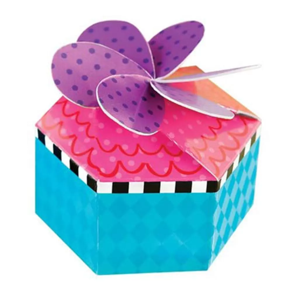 - Лазурные коробочки, украшенные бантом-цветком в стиле Алисы в Стране Чудес. Что может быть прекраснее, чем получить угощение на вечеринке в стиле Чеширского Кота и Безумного Шляпника именно в такой коробочке?!