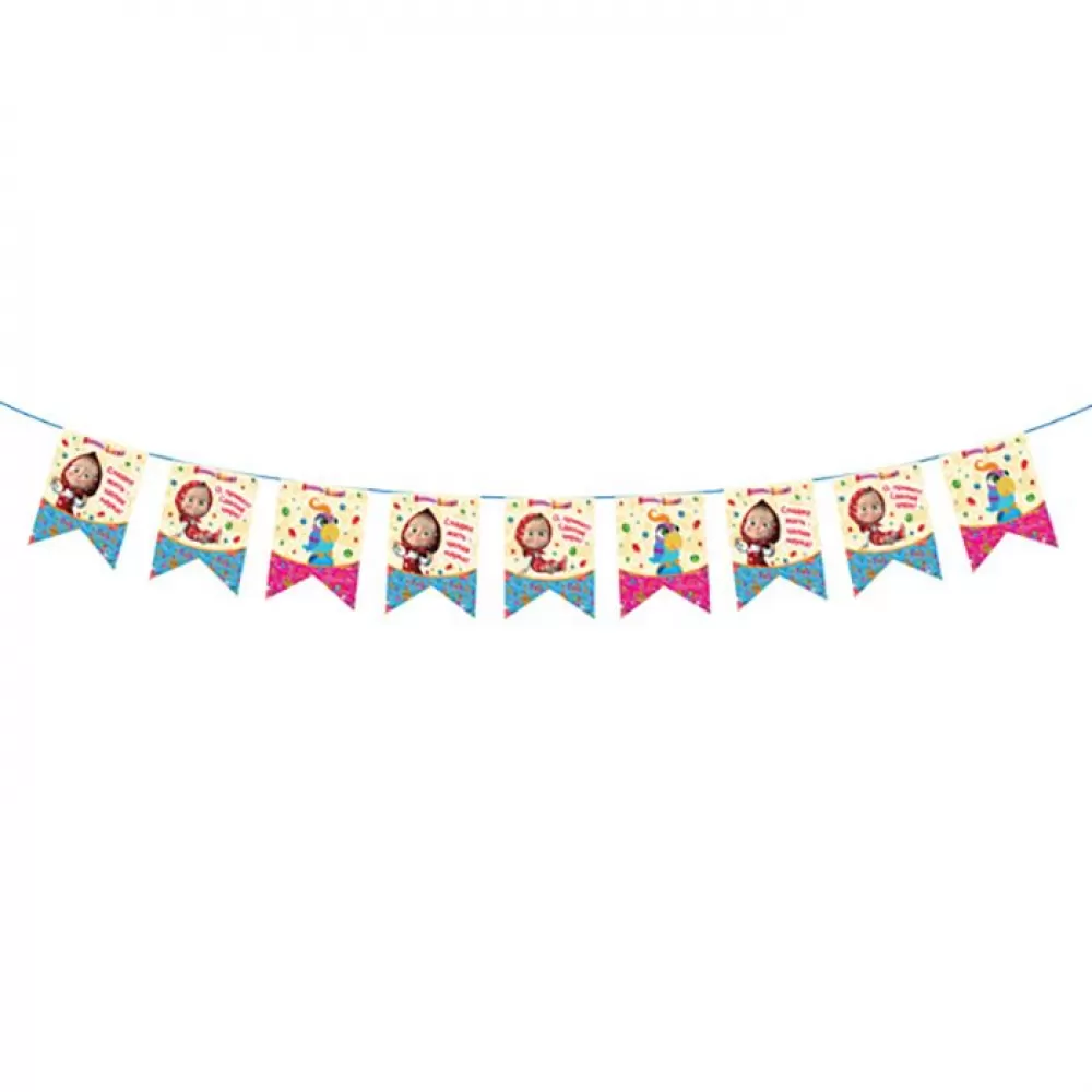 - Гирлянда «Маша и Медведь» длиной 3 м изготовлена из бумаги, имеет высоту флажков 18 см.