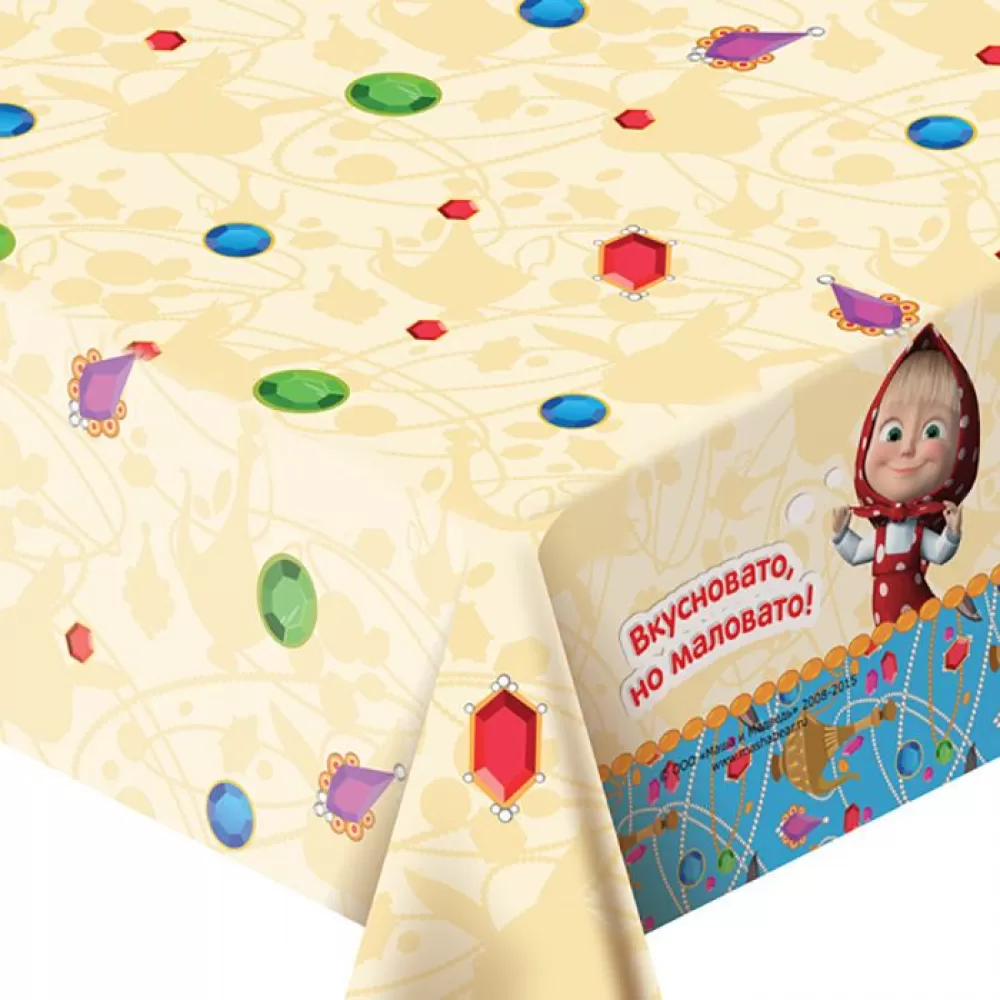 - Скатерть «Маша и Медведь» с ярким принтом украсит праздничный стол со всевозможными вкусностями.