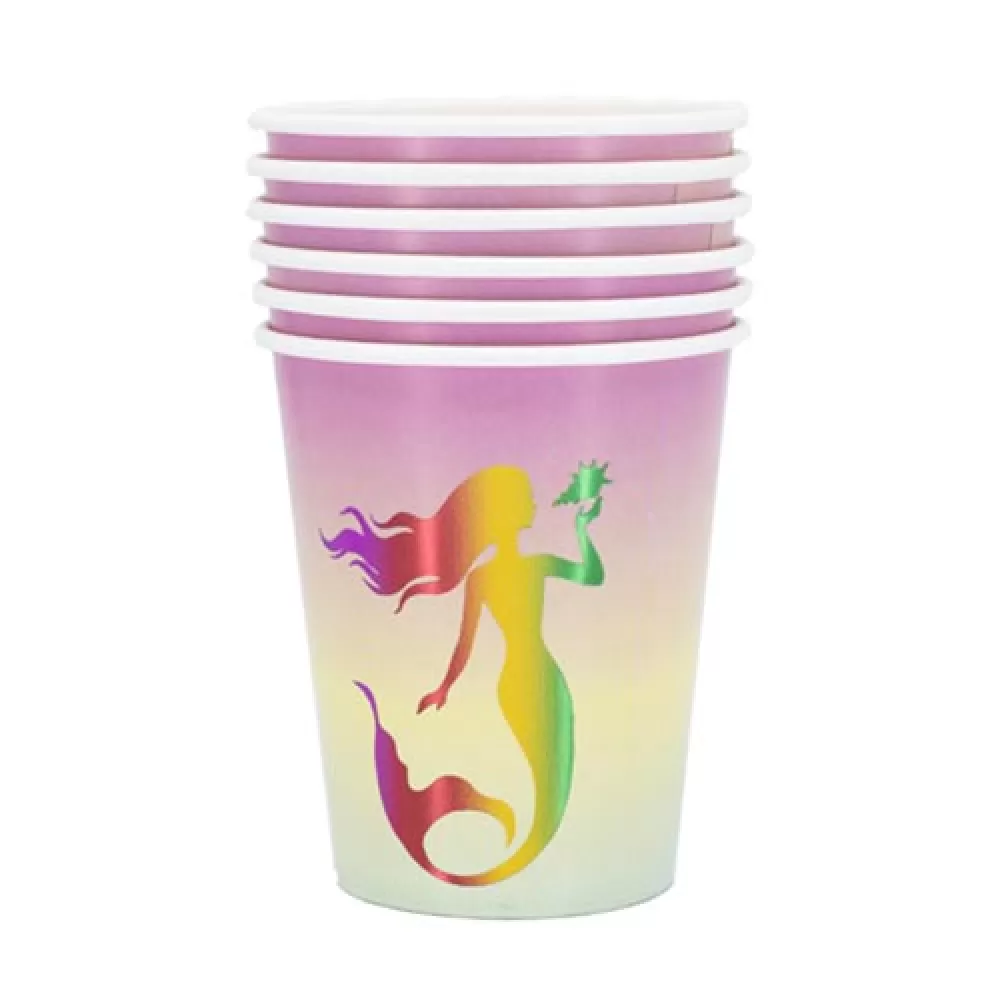 - Одноразовые стаканы Русалочка радужная с блестящей фигурой русалочки на нежном радужном фоне украсят праздничный стол и поднимут настроение.