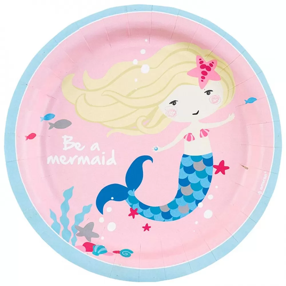 - Десертные одноразовые тарелки для праздника Русалочка, в наборе 8 бумажных тарелок диаметром 17 см.