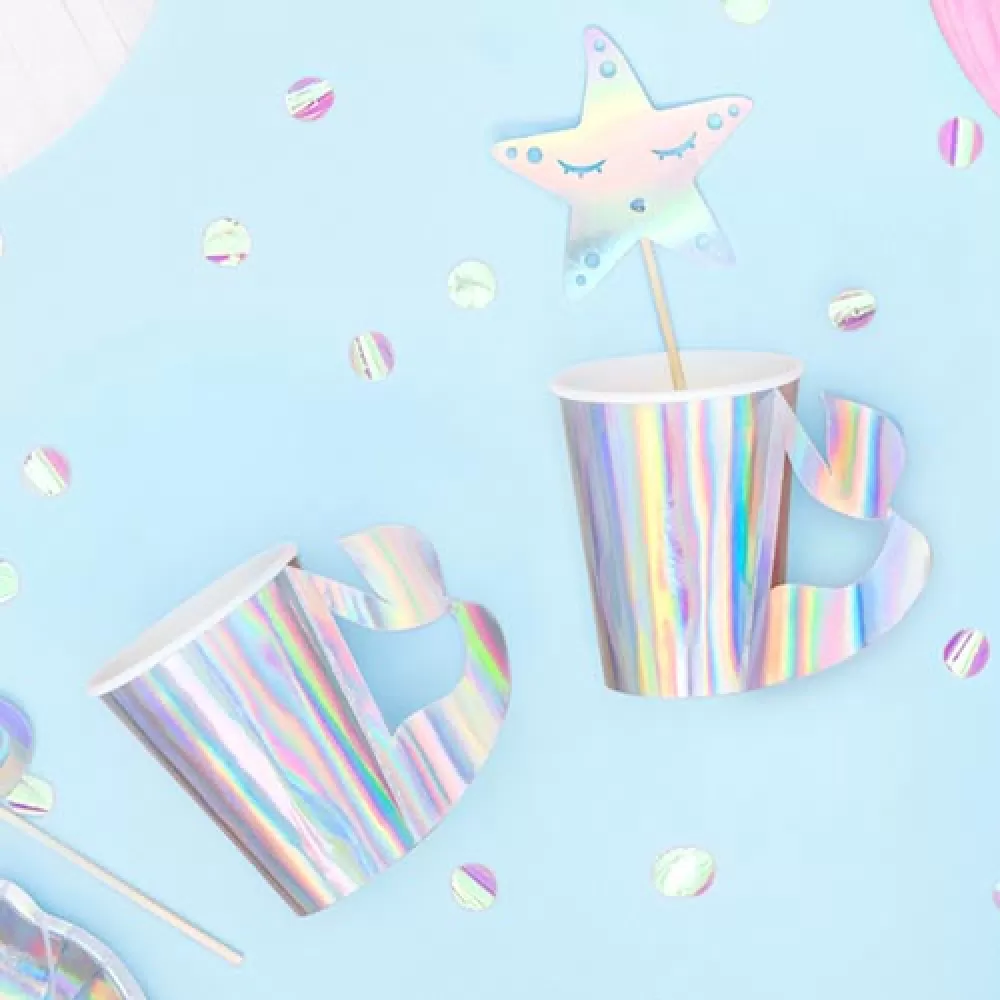 - Одноразовые перламутровые стаканы «Русалочка» с фигурной ручкой-хвостиком украсят праздничный стол на Mermaid-party.