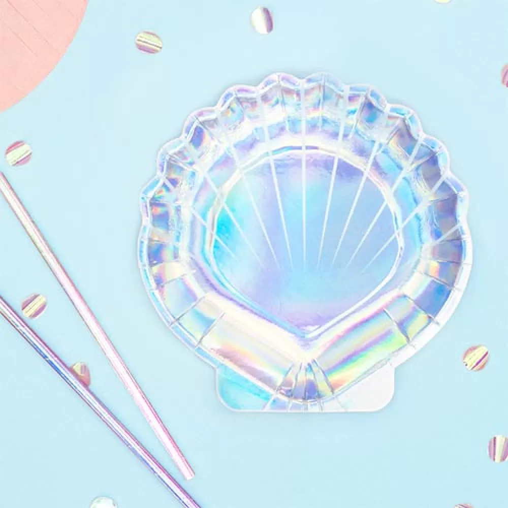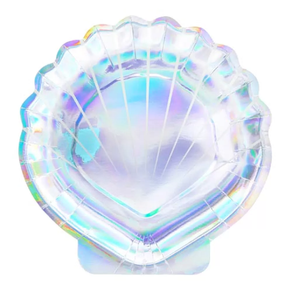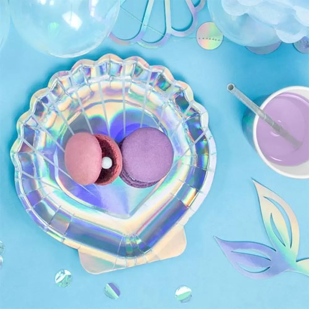 - Десертные одноразовые бумажные тарелки-ракушки для праздника Русалочка.