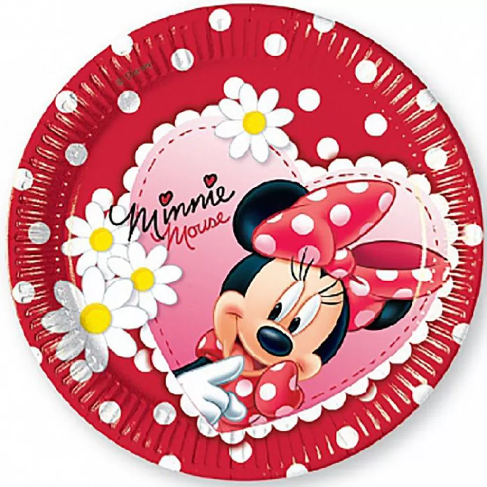 - Тарелки одноразовые Минни Ромашки, в наборе 8 бумажных тарелок диаметром 20 см.