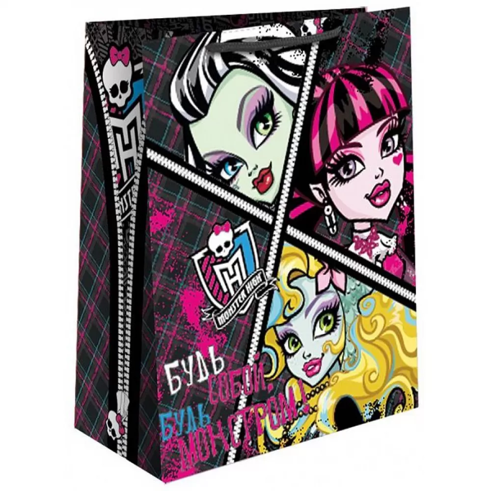 - Подарочный пакет «Будь монстром» с героями из популярного мультфильма «Монстр Хай» – это эффектный и практичный способ оформления подарка.