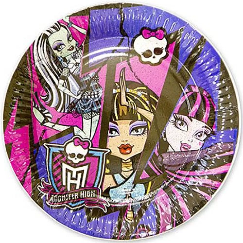 - Одноразовые праздничные тарелки в стиле Школы Монстров с прекрасными Фрэнки Штейн, Дракулаурой и Клео де Нил - отличное дополнение монстровечеринки.