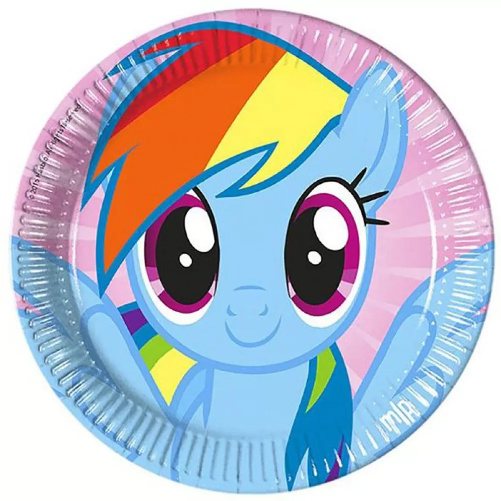 - Тарелки одноразовые бумажные Май литл Пони, в упаковке 8 больших ламинированных бумажных тарелок с героями мультфильма «Май литл Пони».