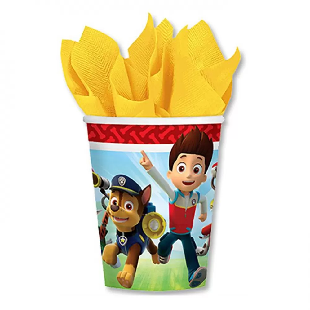 - Яркие бумажные стаканчики, скатерти и другие атрибуты коллекции «Щенячий патруль» легко создают атмосферу праздника.