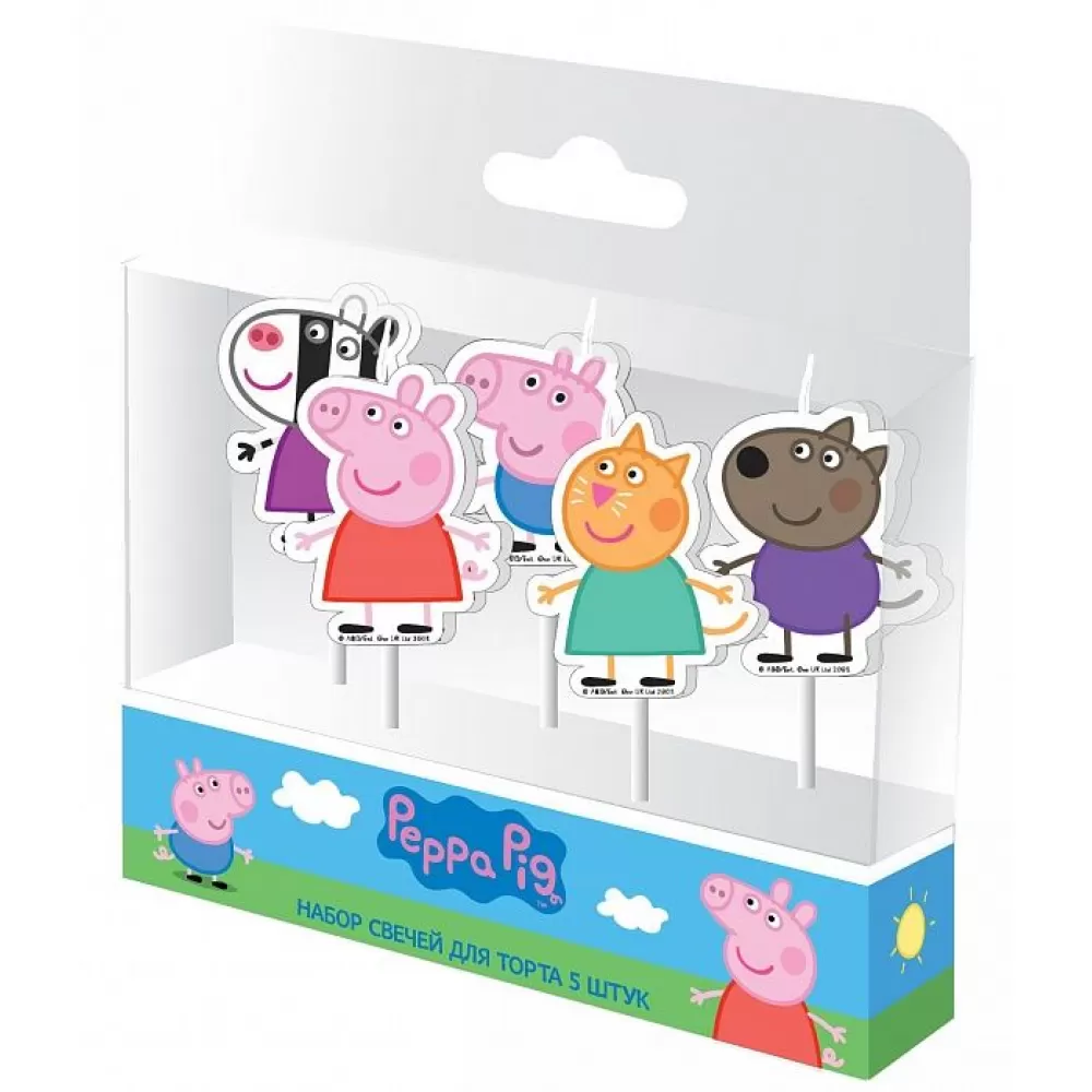 - В наборе «Свинка Пеппа и друзья» 5 фигурных свечей в виде героев мультфильма с пластиковыми держателями.