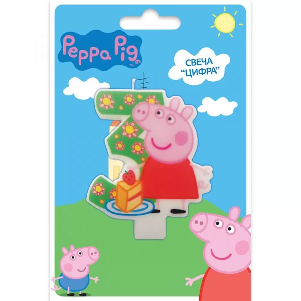 - Свеча 3 «Свинка Пеппа» отлично дополнит красивый праздничный торт.