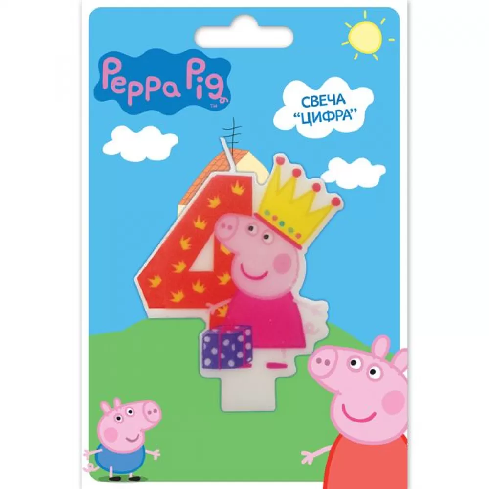 - Вашей малышке исполняется 4 годика? Это радостное событие не может обойтись без вкусного торта! Идеальным украшением для торта может стать свеча «Свинка Пеппа 4» в виде любимой героини.