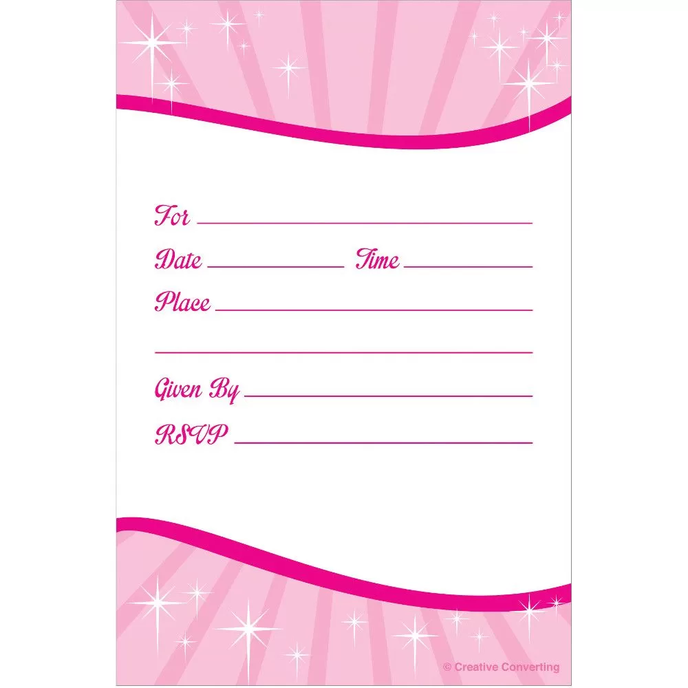 - Фольгированные приглашения на вечеринку Принцессы, в наборе 8 приглашений и 8 белых конвертов.