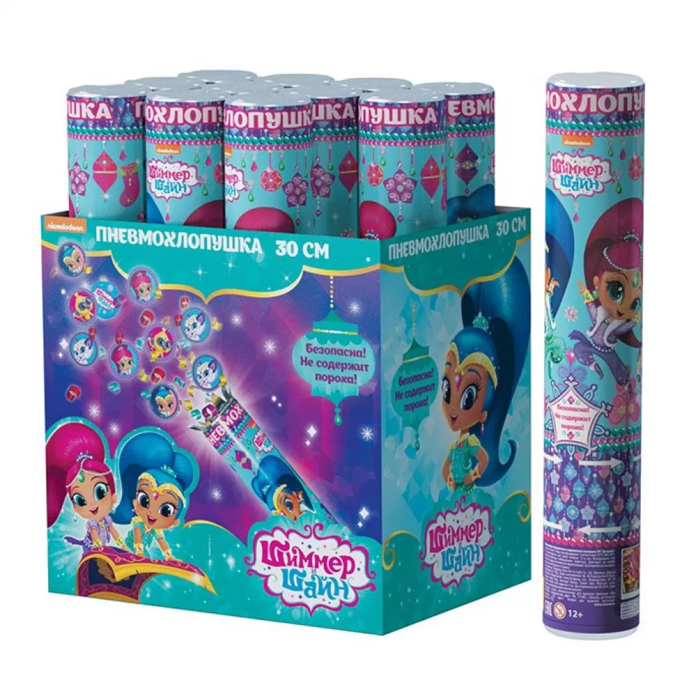 - Пневмохлопушка «Шиммер и Шайн» высотой 30 см, наполнение - конфетти круглой формы с изображением героев мультфильма.