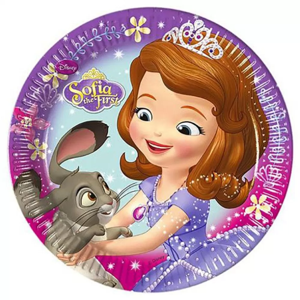 - Бумажные одноразовые тарелки «София Прекрасная» для праздника. В упаковке 8 десертных ламинированных тарелок, диаметр тарелки размером 20 см.