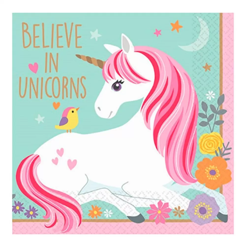 - В упаковке 16 бумажных двухслойных салфеток «Единороги», размер салфетки 25*25 см.
