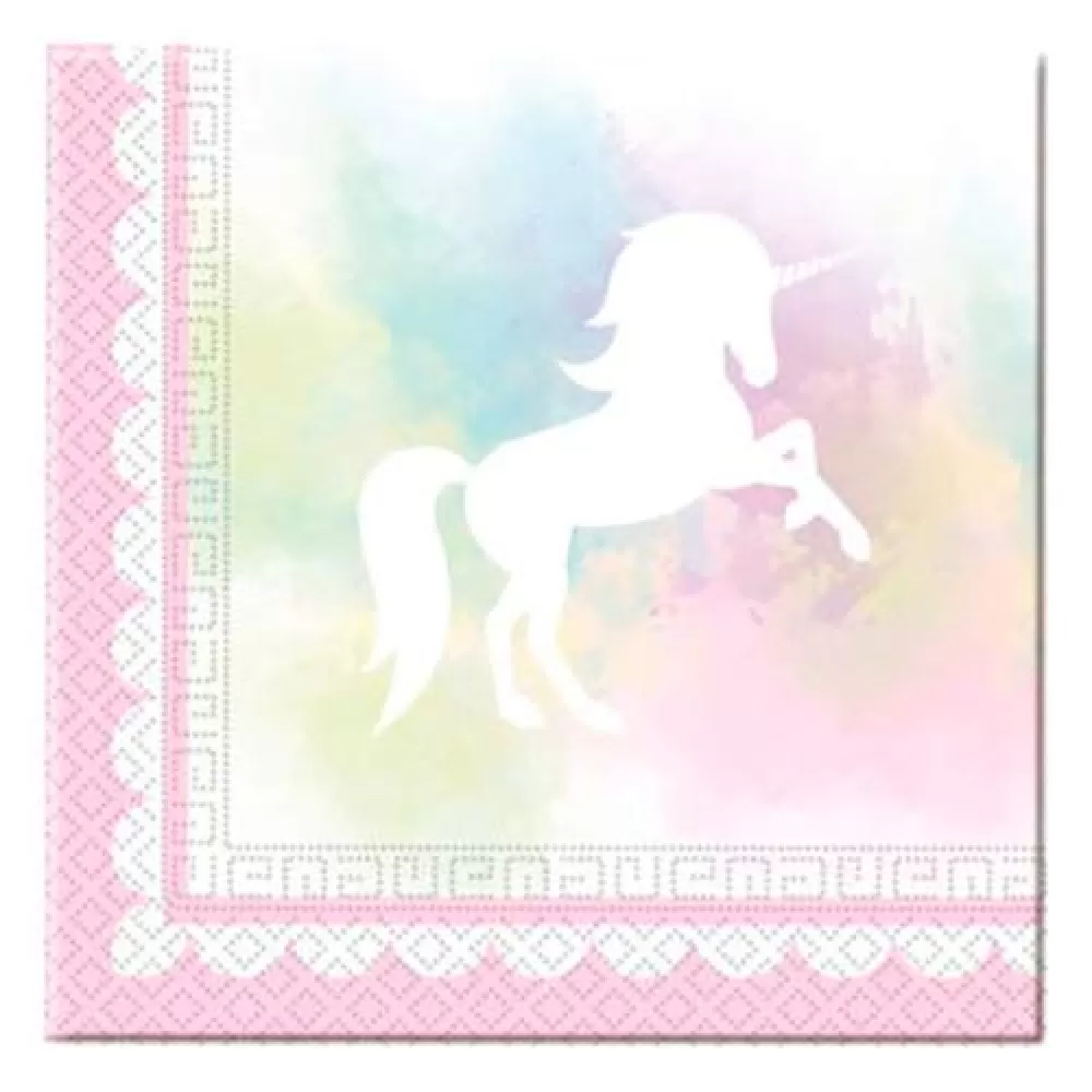 - В упаковке 20 бумажных двухслойных салфеток «Единороги», размер салфетки 33*33 см.