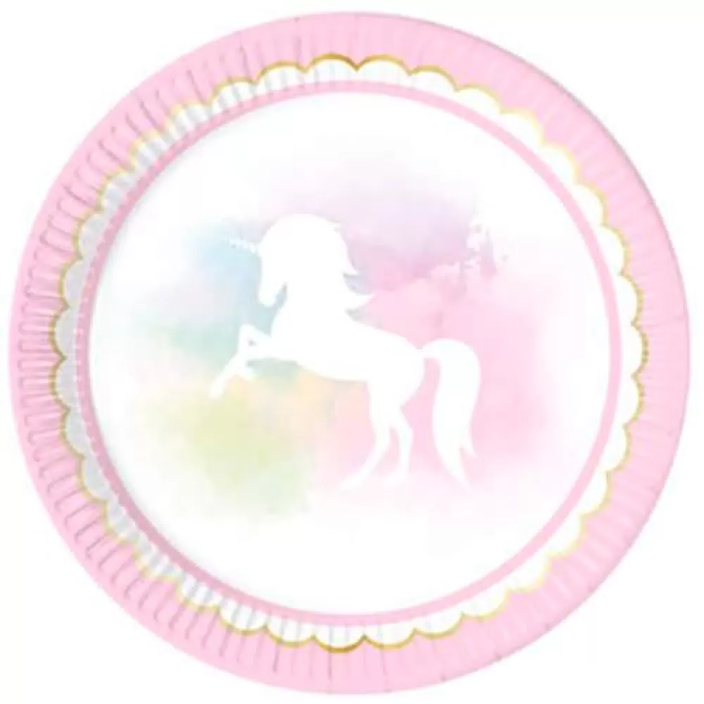 - Одноразовые тарелки Единорог Акварель, в наборе 8 бумажных тарелок диаметром 23 см. Для тех, кто верит в единорогов - мягкие пастельные акварельные оттенки, как в волшебном сне!