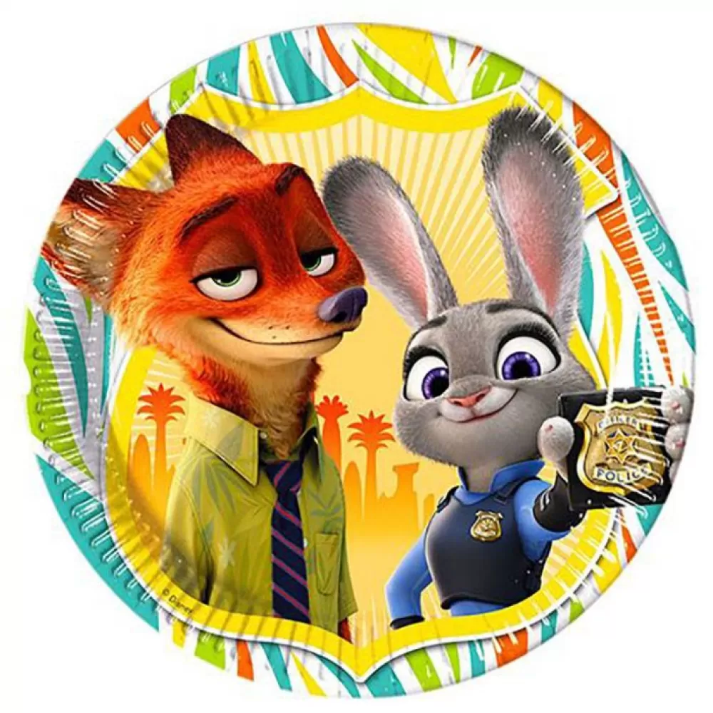 - Большие одноразовые тарелки для праздника Зверополис. В упаковке 8 картонных ламинированных тарелок с героями мультфильма «Зверополис».