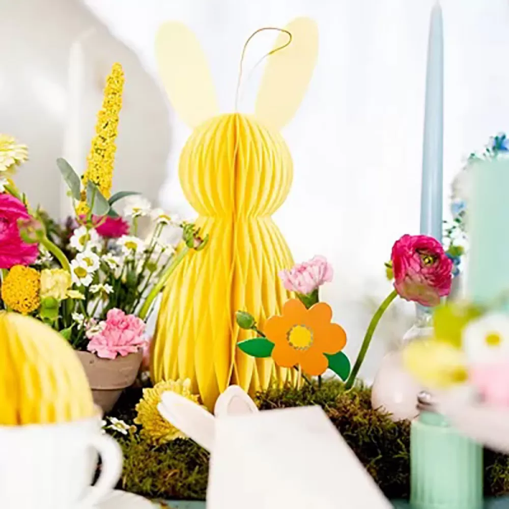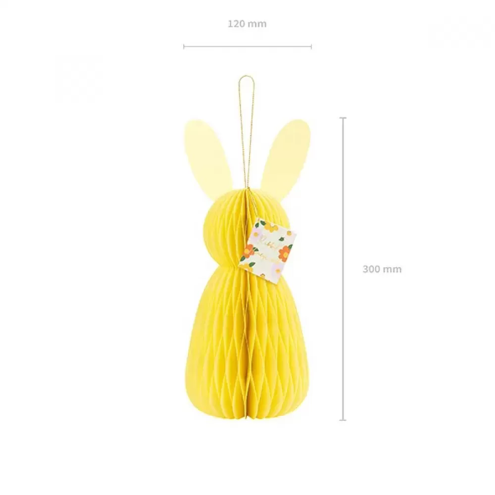 - Бумажный декор шар-сота Кролик желтого цвета, высота около 30 см