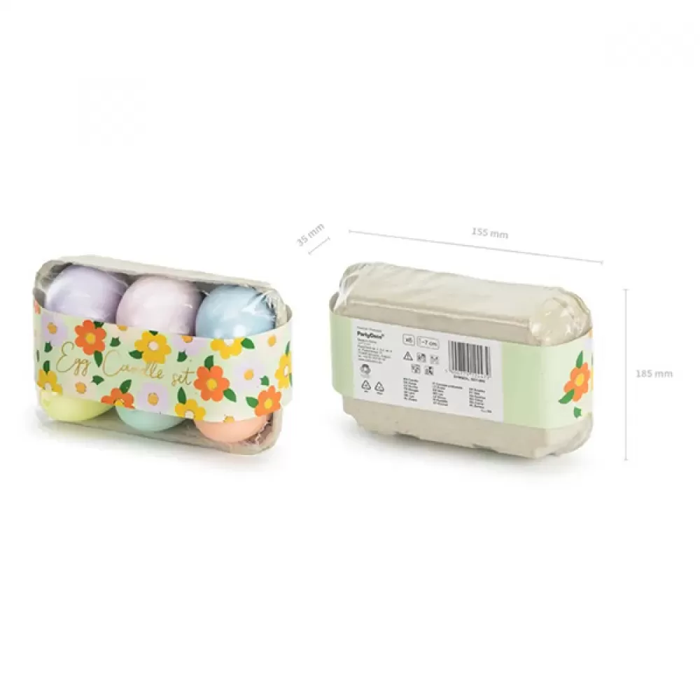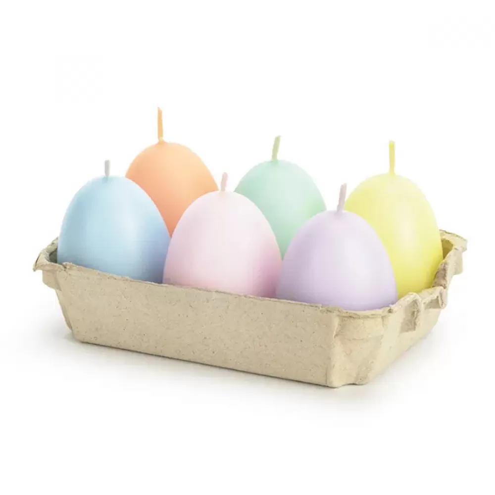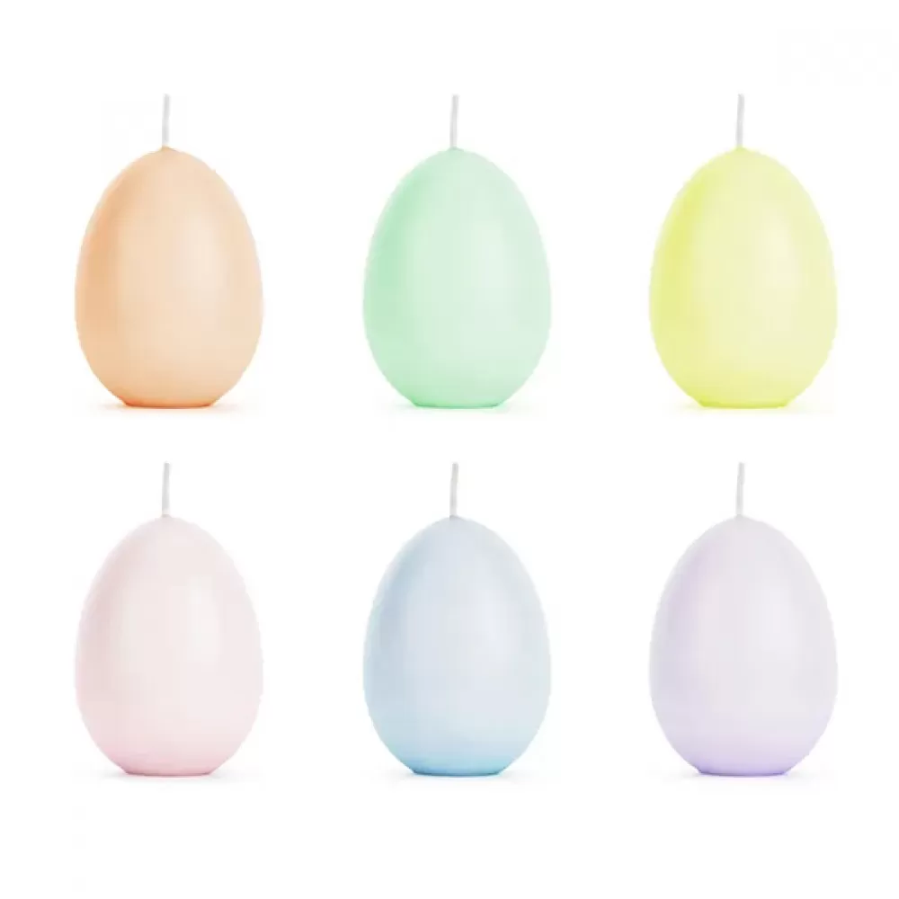 Свечи-яйца, набор из 6 штук в цветах: розовый, светло-фиолетовый, светло-зеленый, голубой, лососевый, светло-желтый.