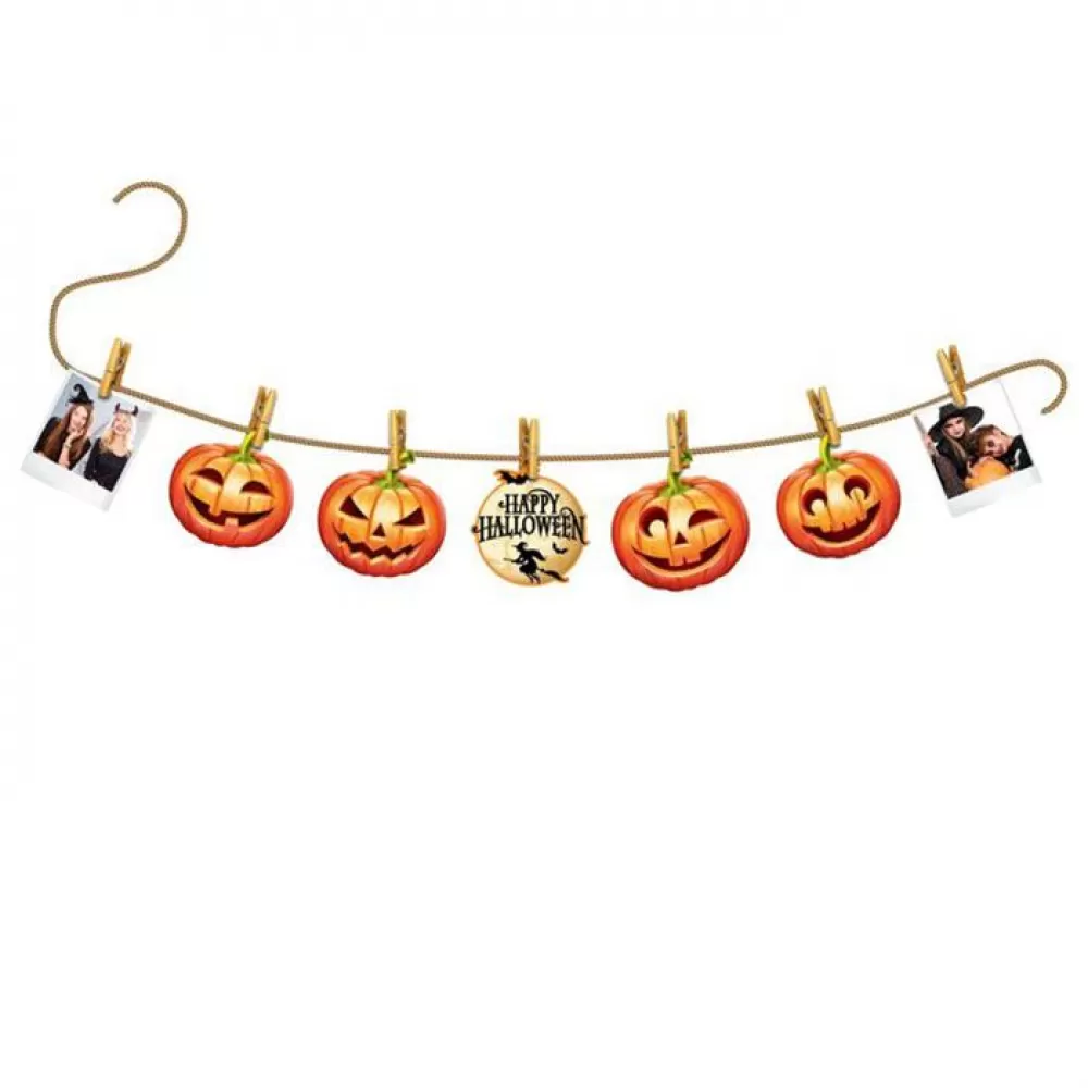 - Гирлянда-флажки Happy Halloween на прищепках, длина гирлянды 150 см.