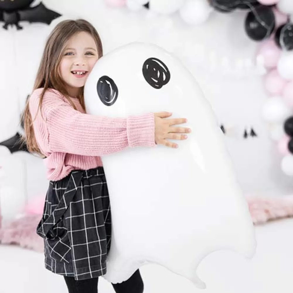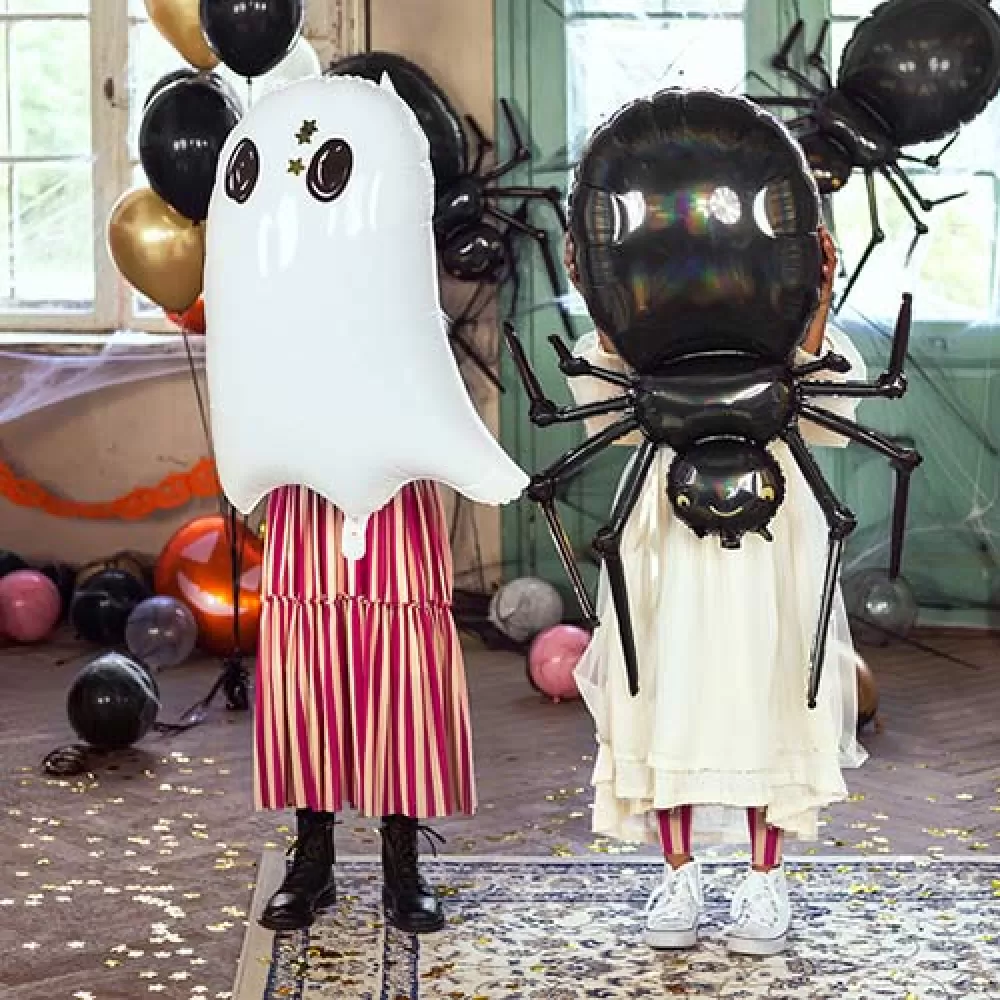 - Фольгированный шар Привидение, белого цвета с черным принтом, размер около 48х68 см.