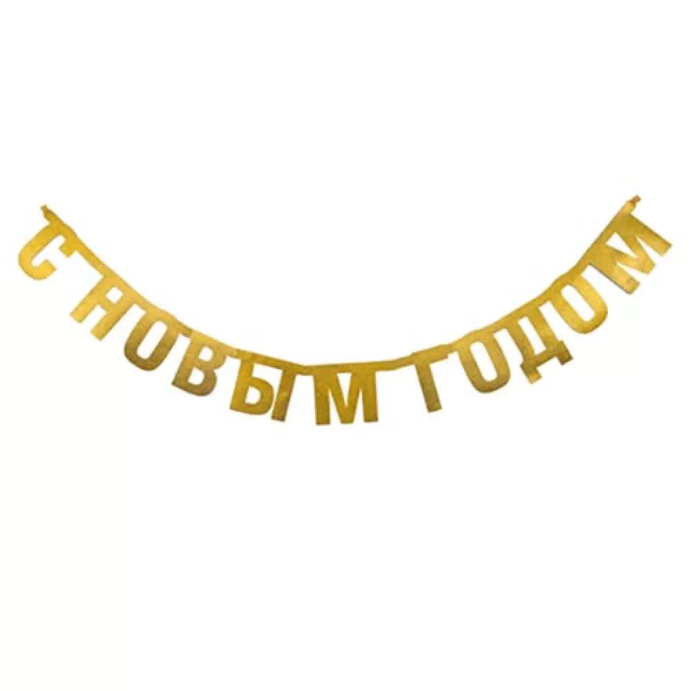 - Гирлянда-буквы С Новым годом золотая с глиттером.