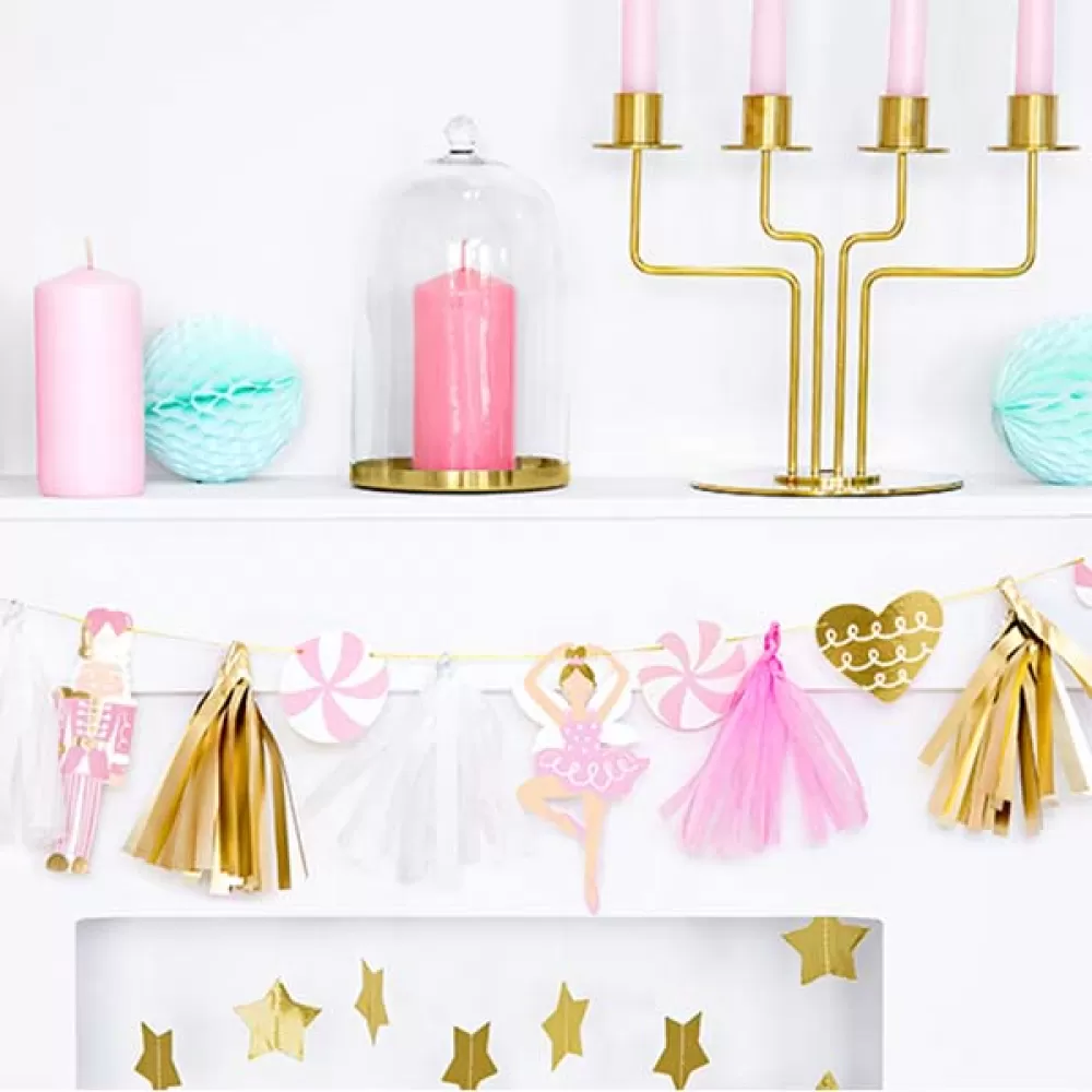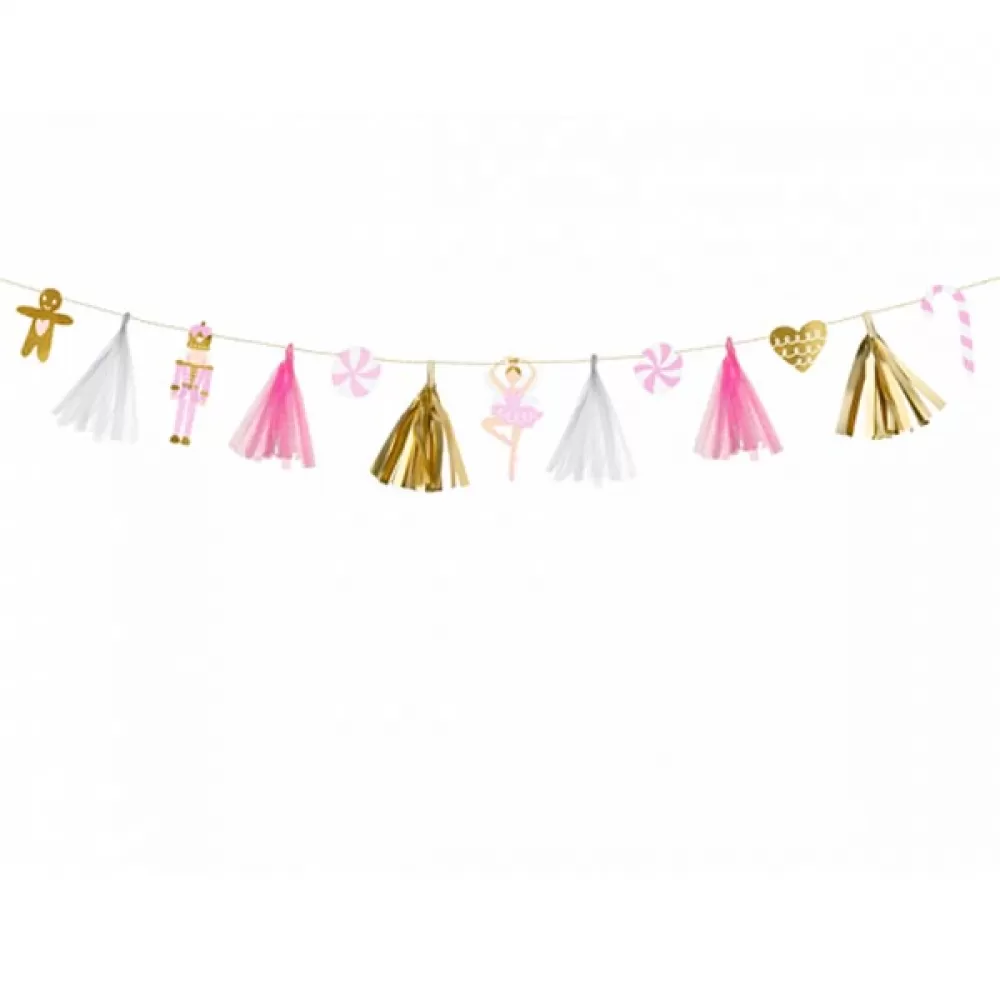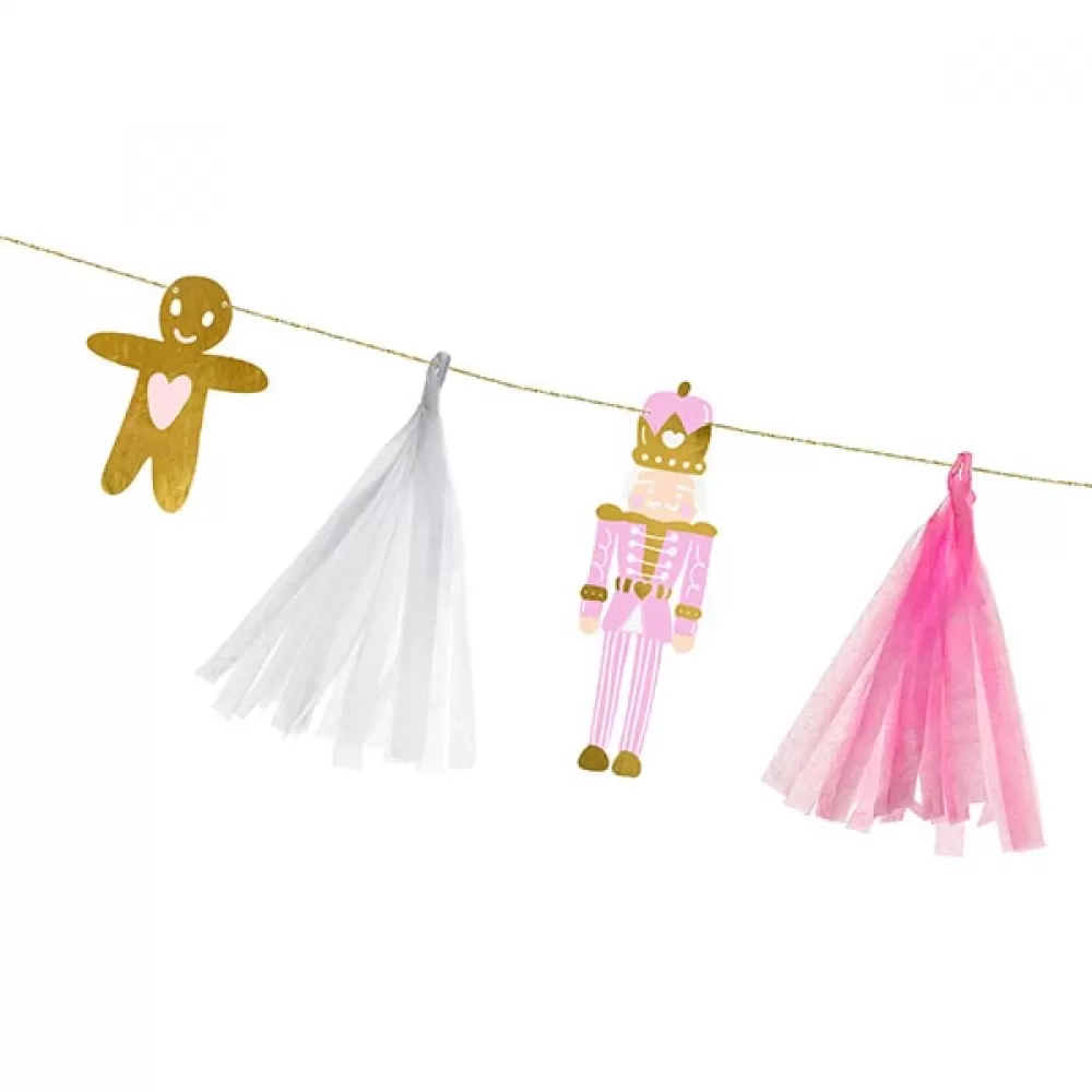 - Гирлянда новогодняя Щелкунчик, на гирлянде подвески - имбирный человечек, щелкунчик, балерина, леденцы, кисточки тассел.