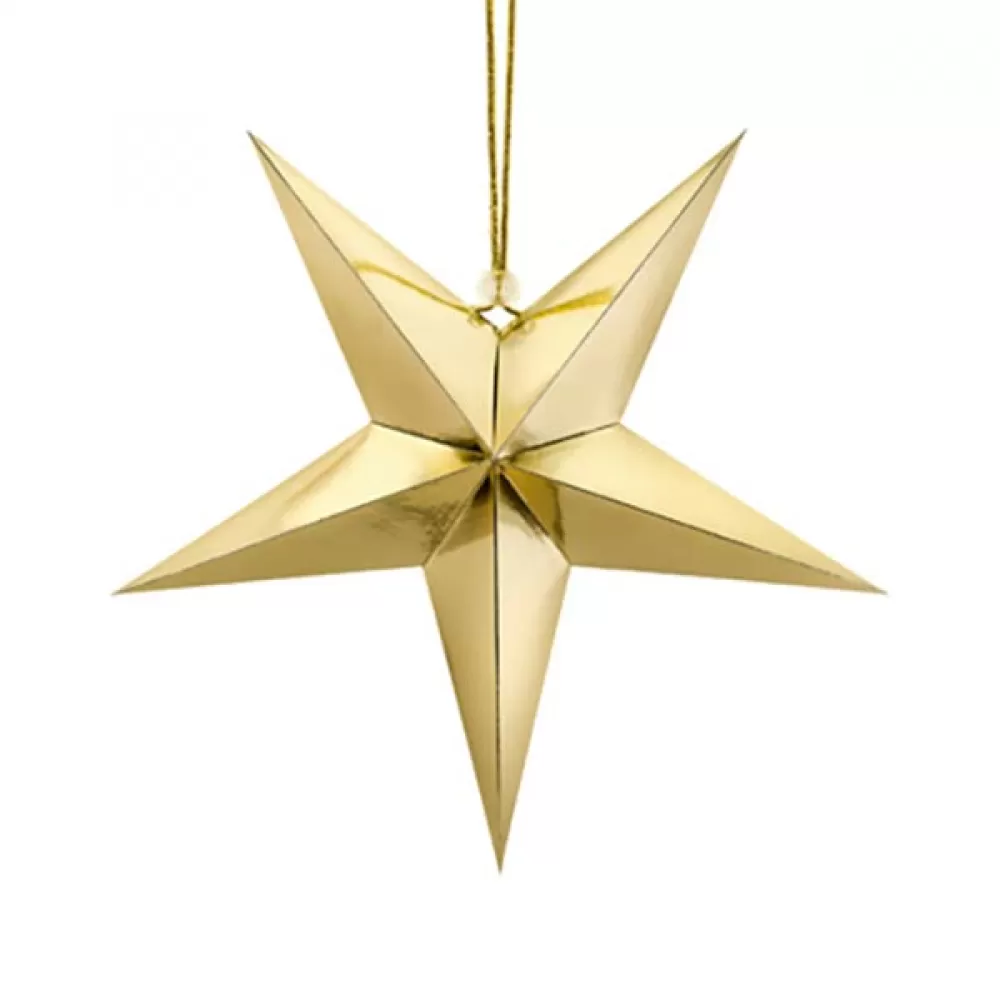 - Звезда золотая бумажная объемная, размер звезды 45 см.