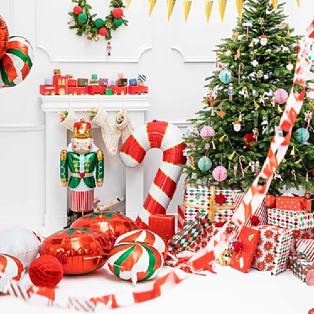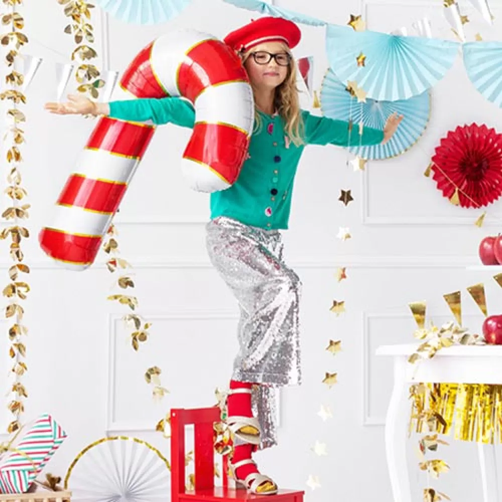 - Воздушный фольгированный шар леденец-трость, красно-белые полосы с золотом