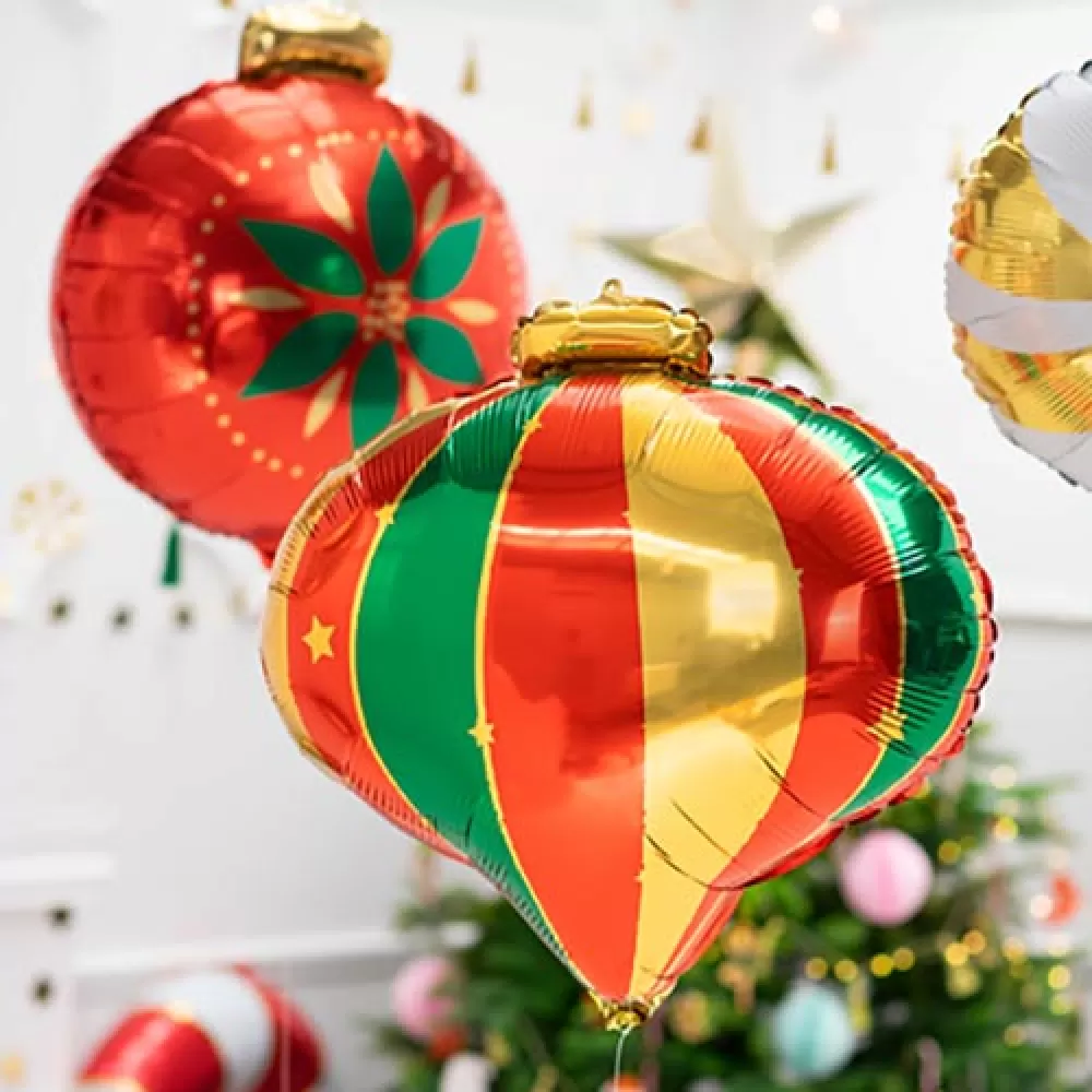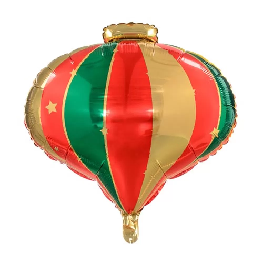 - Воздушный шар из матовой фольги Елочная игрушка красного цвета с зеленым и золотым металлическим принтом,