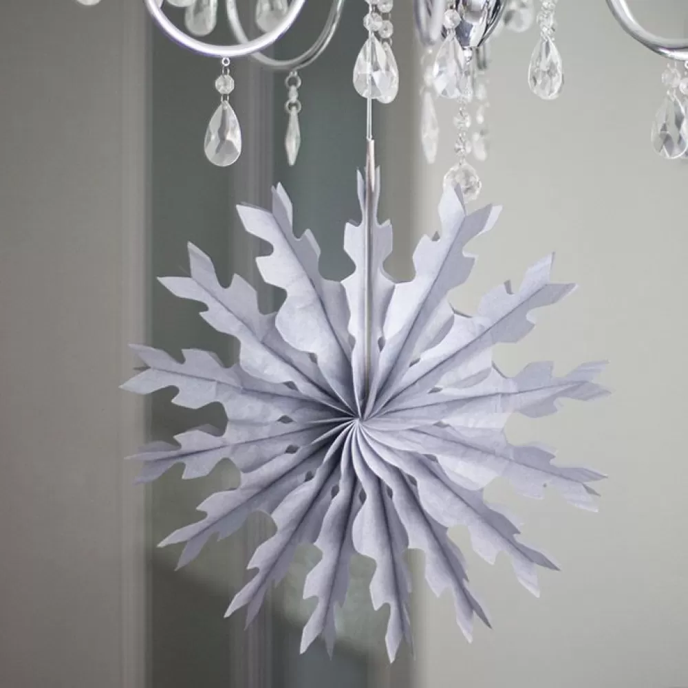 - Фант бумажный «Снежинка серебряная», декоративное бумажное украшение для праздничного оформления интерьера.